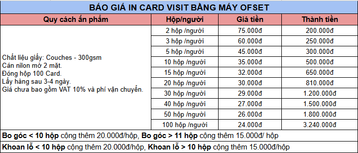 Báo giá in danh thiếp